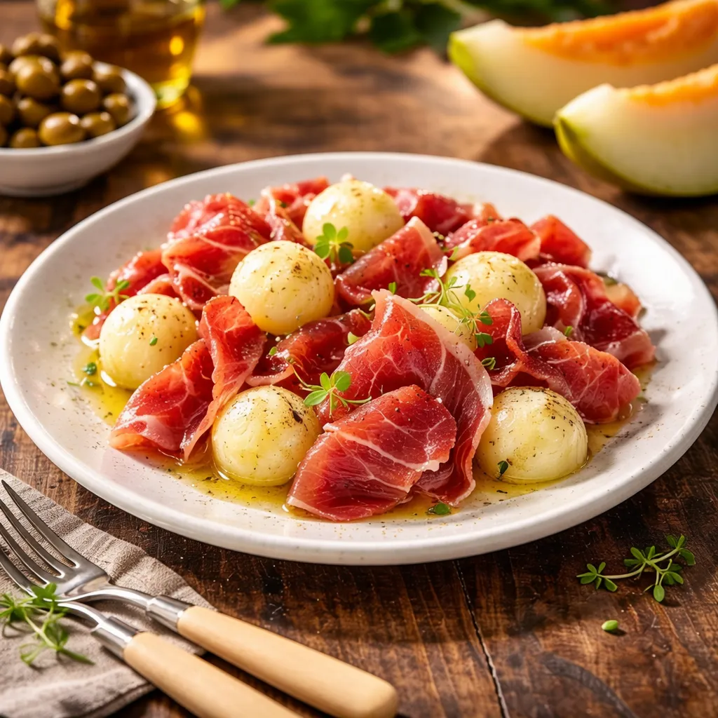 Perlas de melón con jamón ibérico